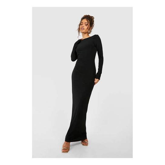 Long Sleeved Black Plus Size Maxi DressPlus size.Make a lasting impression with this alluring long-sleeved maxi dress .