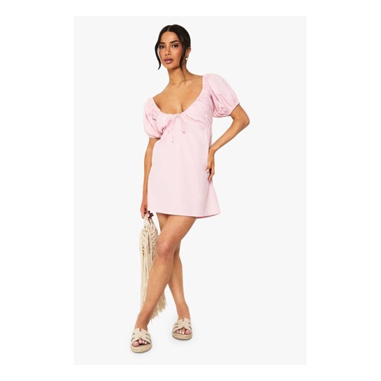 Cute puffy sleeves create a sissy look whilst the sweetheart neckline with subtle tie detail adds a touch of feminine charm.